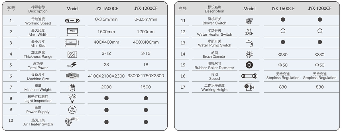 四對(duì)毛刷、二對(duì)風(fēng)刀配置。