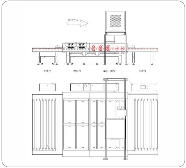 主要由進(jìn)片段、盤刷段、清洗段、干燥段、出片段組成 。主傳動為軸傳動、變頻器調(diào)節(jié)速度。